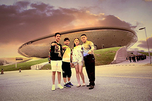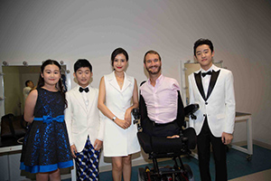 ▲“中国魔指精灵”与全球著名演说家尼克·胡哲、著名电影演员高圆圆在一起